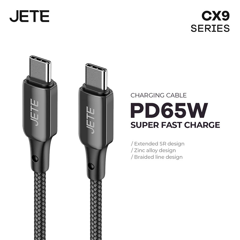Material kabel JETE CX9 Series menggunakan bahan Zinc Alloy dengan kualitas baik. Material kabel ini memberikan tampilan yang lebih berkilau dan terkesan premium. Selain itu, kabel nampak lebih kuat dan tidak mudah patah pada bagian ujung atau port kabel.